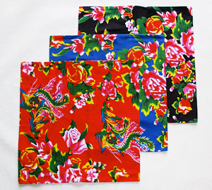 おなじみの花布クッションカバーが、