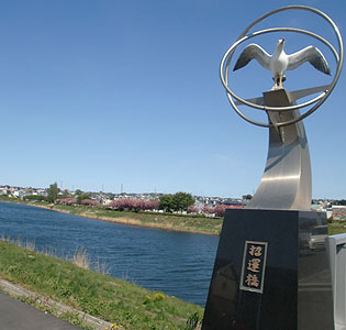 会場近くの新井田川。向こう側には、かろうじてまだ咲いている