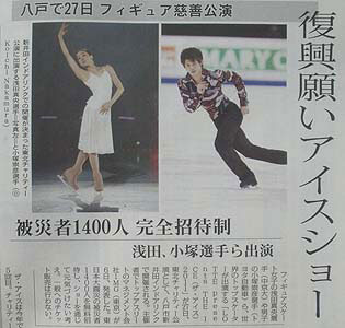 事務局によると、浅田選手ら出演者が、被災地での慈善公演