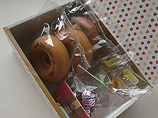 ドーナツやチョコが入った詰め合わせセット。