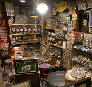 この道の駅には、2階に昭和のおもちゃや生活用品などを、たく